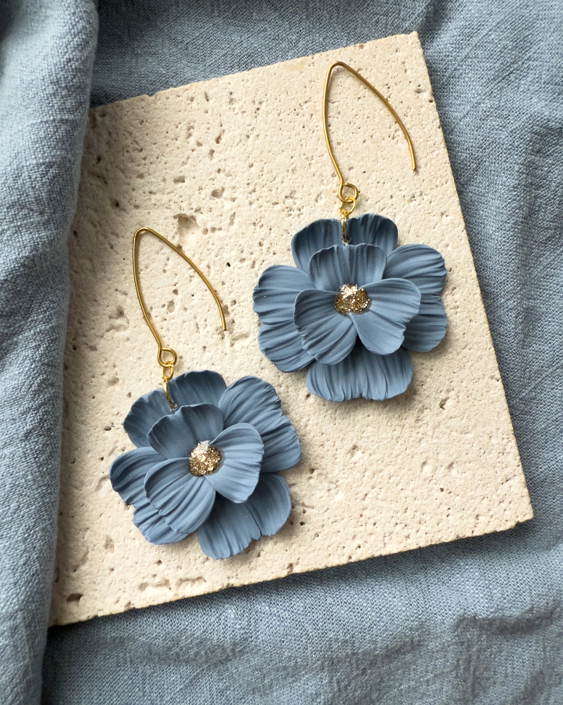 Alla smyckesdelar är allergisäkra och noga utvalda. Smycket i sig är handgjort i lera och små variationer kan skilja i ett par örhängen. Det kan även skilja lite mellan bilden på produkten och paret du får hem, då mycket skapas på beställning och efterfrågan, men jag strävar alltid efter att skapa så lika bilden som möjligt.